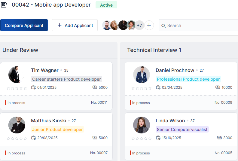 KAN-ONE Kandidatenverwaltung bietet eine zentrale, strukturierte Datenbank für alle Bewerberprofile, die intelligent analysiert und mit offenen Stellen verknüpft werden. Dank automatisiertem CV-Parsing und KI-gestütztem Matching werden geeignete Kandidaten schneller identifiziert und Zeit gespart. Teams können Bewerbungen und Profile übersichtlich vergleichen, Fortschritte visuell verfolgen und durch offene Boards gemeinsam effizient Entscheidungen treffen. Die Lösung gewährleistet maximale Transparenz, Datenschutz und eine klare Dokumentation aller Aktivitäten – ideal für Unternehmen, die ihren Recruitingprozess effizienter, schneller und qualitätsorientierter gestalten wollen.