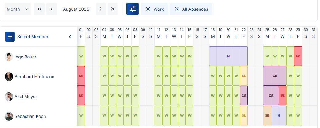 HR-Manager steuern über standardisierte und automatisierte Workflows alle Personalprozesse wie Onboarding, Vertragsänderungen oder Beförderungen direkt aus der Akte. Das reduziert manuellen Aufwand und garantiert einen fehlerfreien Ablauf. Führungskräfte erhalten mit dem intuitiven Dashboard einen schnellen Überblick über Teamstrukturen, Anwesenheiten und wichtige Kennzahlen, um fundierte Entscheidungen zu treffen.