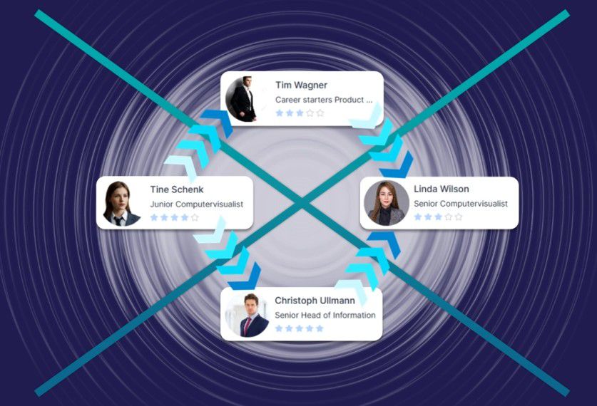 Das Bild symbolisiert KAN-ONEs KI-gestützte Matching Funktion zur automatischen, treffsicheren Verknüpfung von Kandidaten und offenen Vakanzen.